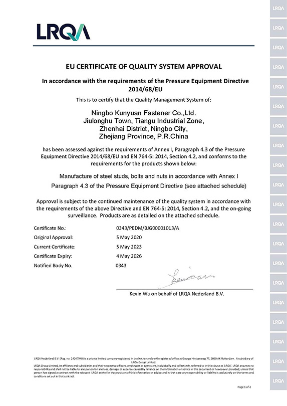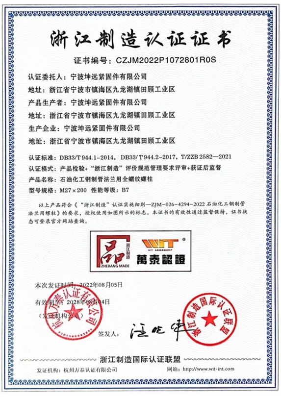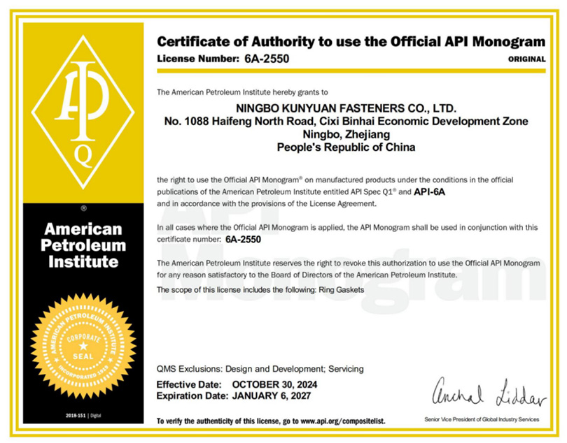 The company's products are certified to international standards such as ISO, API, CPR, PED-4.3, AD2000, UKCA-PER, NORSOK M-650, CU-TR EAC, and GOST R, ensuring compliance with stringent global industrial standards.